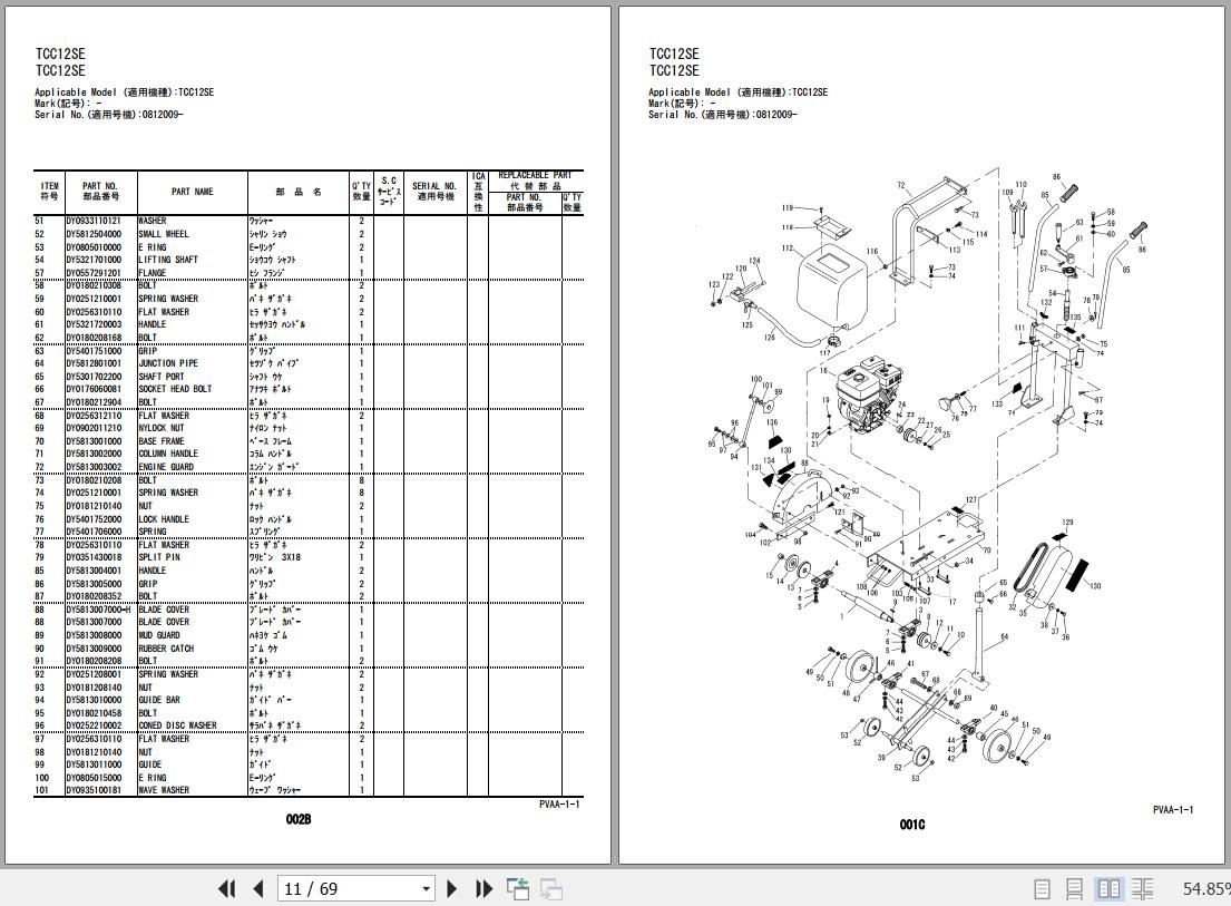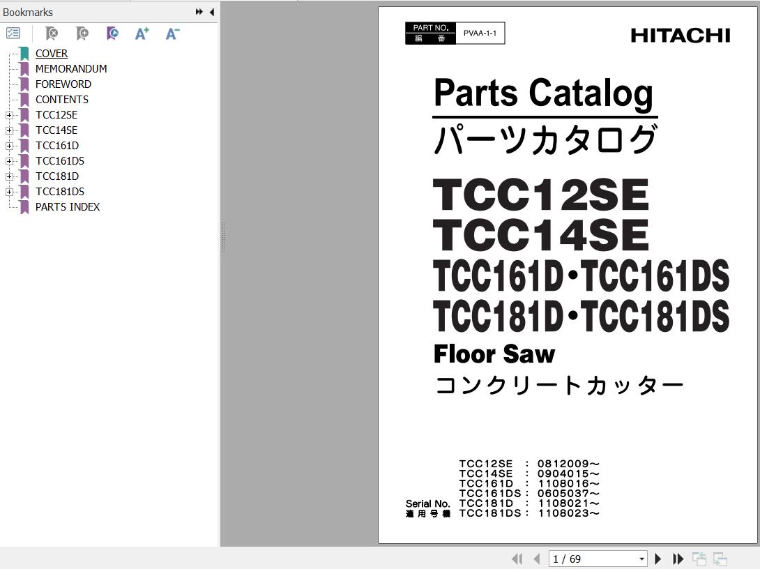 Hitachi TCC12SE 14SE 161D 161DS 181D 181DS Parts Catalog PVAA-1-1