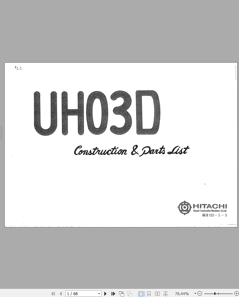 Hitachi UH03D Parts Catalog 152-1-3Size: 3.2 MBMachine: ExcavatorMachine Model: UH03DPage: 68 PagesPart Number: 152-1-3