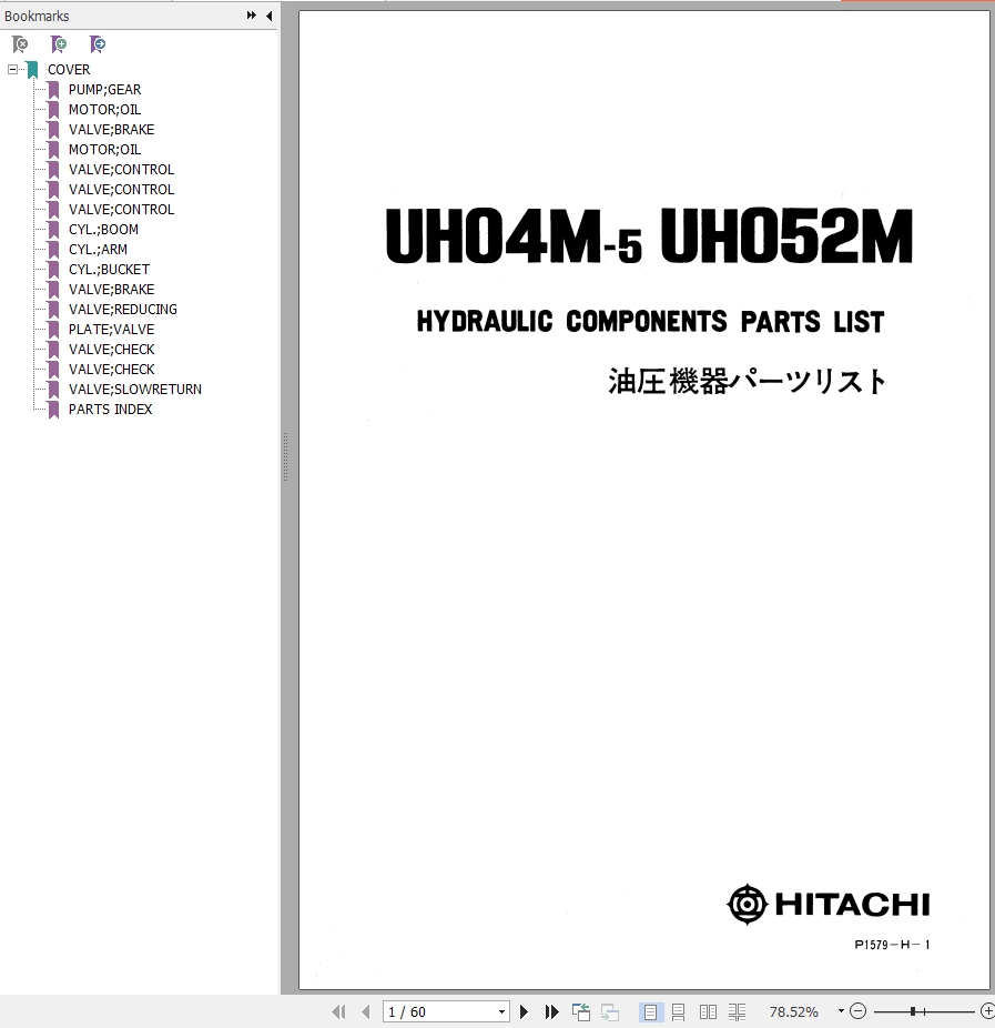 Hitachi UH04M-5 UH052M Parts List P1579-H-1