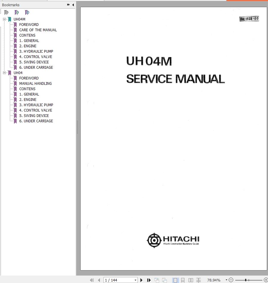 The Bookmarks of Hitachi UH04M Excavator Service Manual: