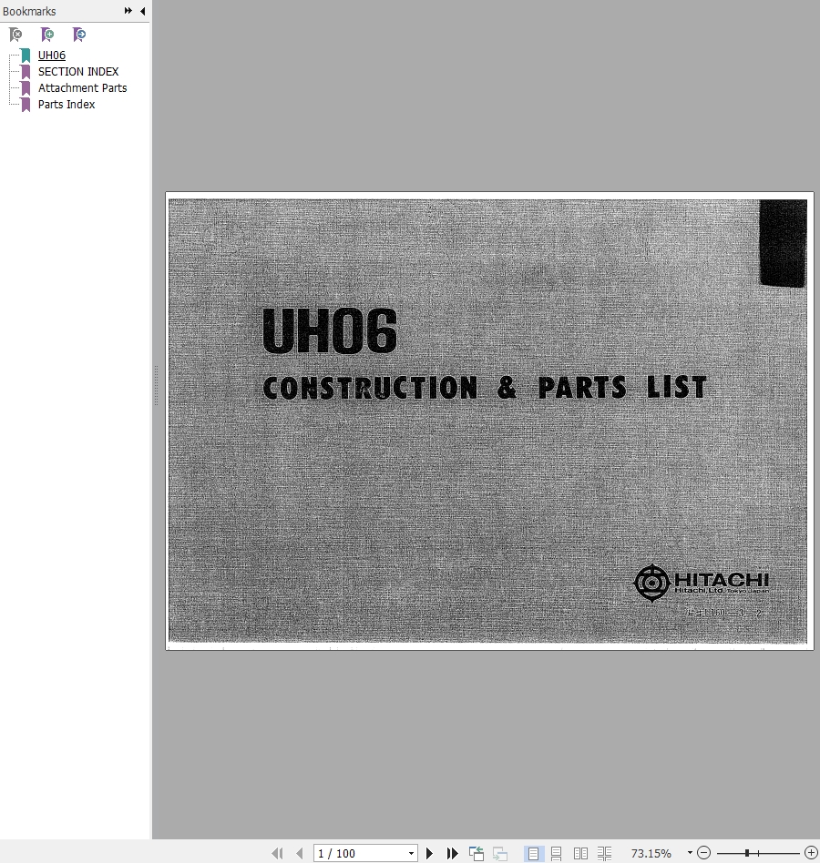 Hitachi UH06 Parts List P160-3-2Size: 5.9 MBMachine: ExcavatorMachine Model: UH06Page: 100 PagesPart Number: P160-3-2
