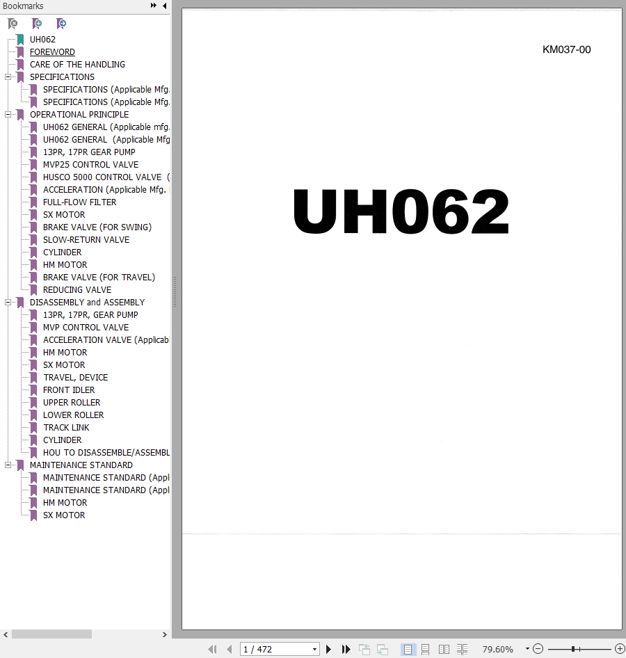 The Bookmarks of Hitachi UH062 Excavator Service Manual: