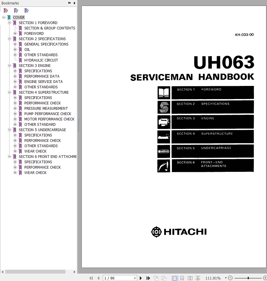 The Bookmarks of Hitachi UH063 Excavator Service Manual:
