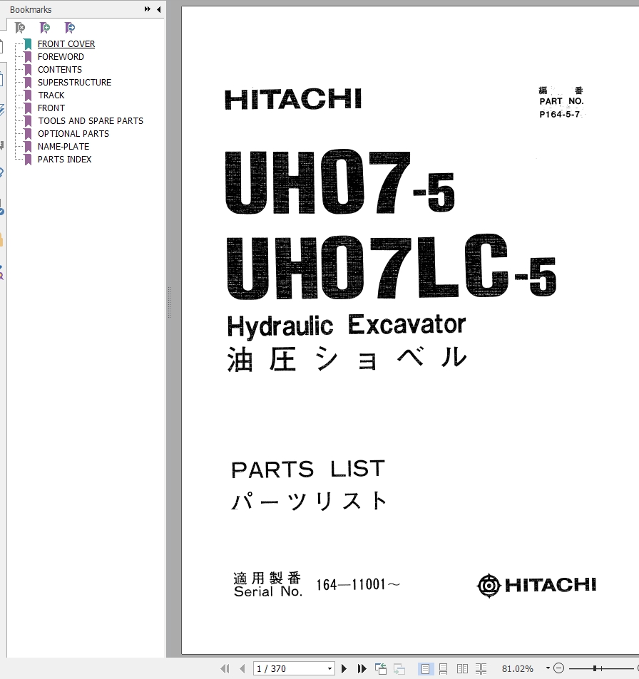 Hitachi UH07-5 UH07LC-5 Parts List P164-5-7