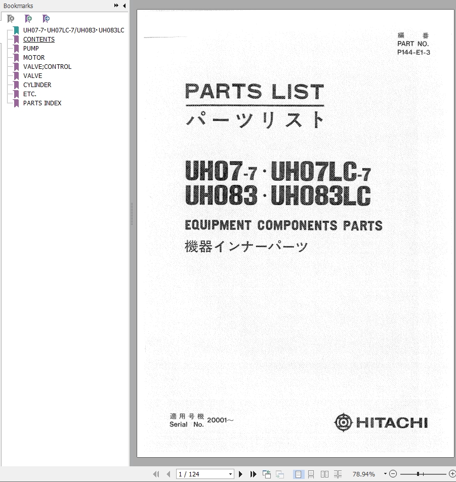 Hitachi UH07-7 UH07LC-7 UH083 UH083LC Parts List P144-E1-3