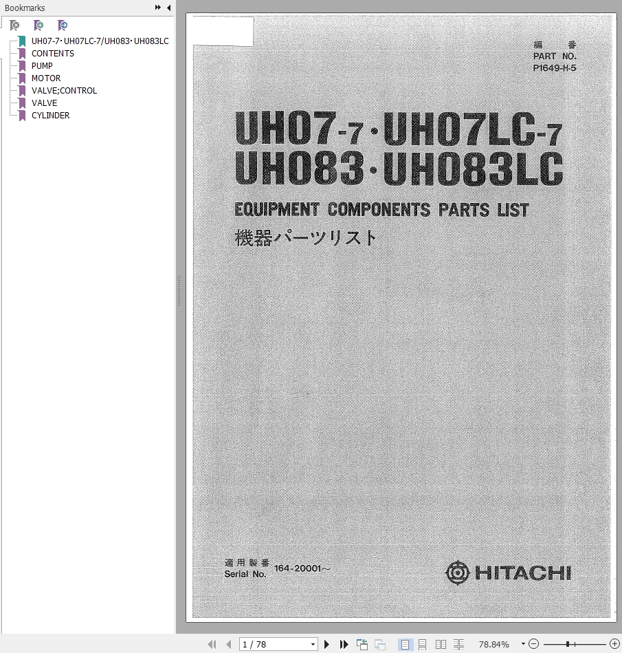 Hitachi UH07-7 UH07LC-7 UH083 UH083LC Parts List P1649-H-5