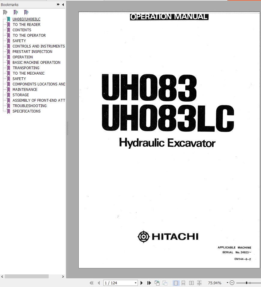 Hitachi UH083 UH083LC Operation Manual EM144-6-2
