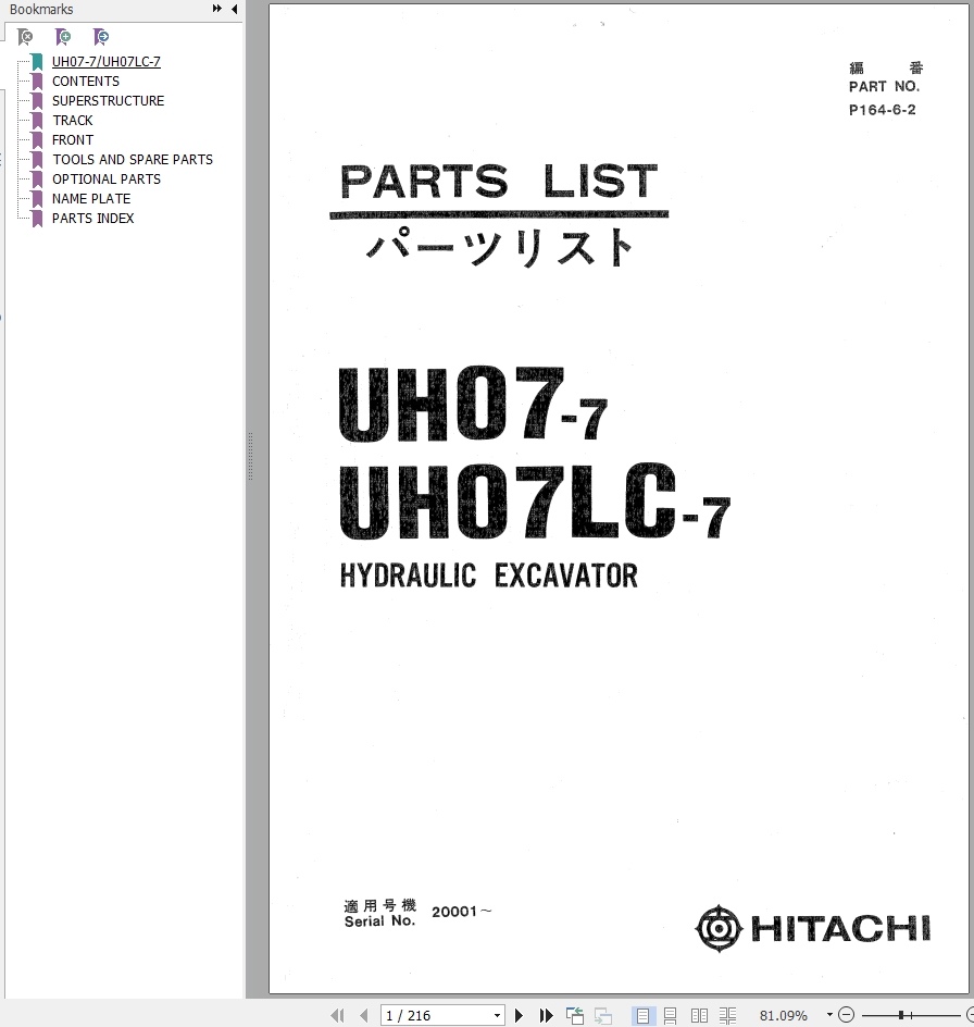 The Bookmarks of Hitachi UH09 Excavator Operation Manual: