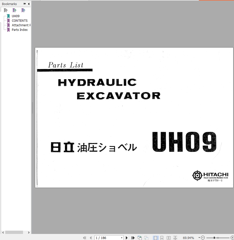 Hitachi UH09 Parts List P750-3Size: 12.2 MBMachine: ExcavatorMachine Model: UH09 Page: 186 PagesPart Number: P750-3