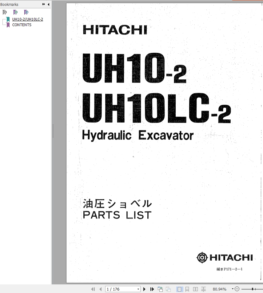 Hitachi UH10-2 UH10LC-2 Parts List P171-2-1
