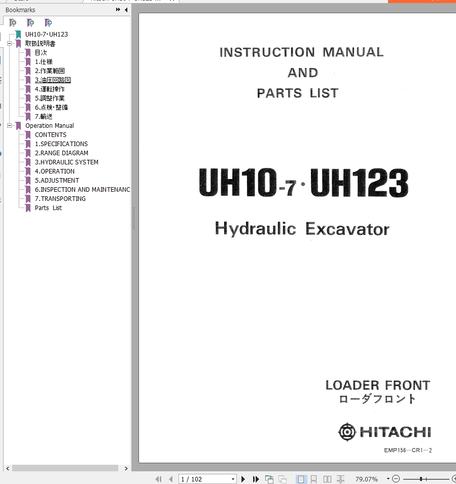 The Bookmarks of Hitachi UH10-7 UH123 Excavator Instruction Mannual And Parts List: