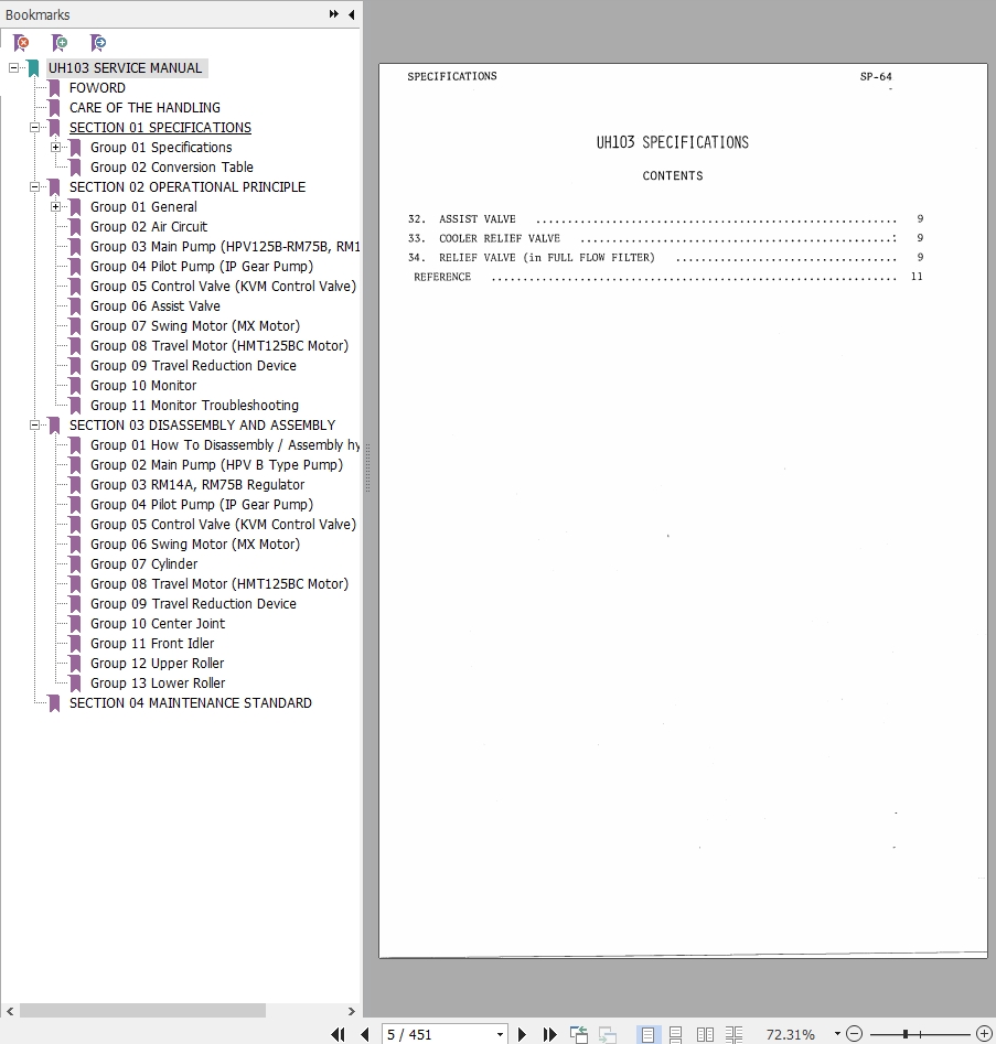 The Bookmarks of Hitachi UH103 Excavator Service Manual: