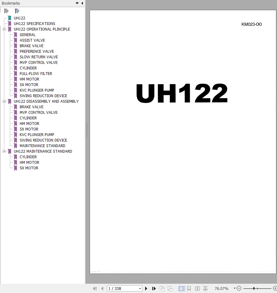 The Bookmarks of Hitachi UH122 Excavator Service Manual: