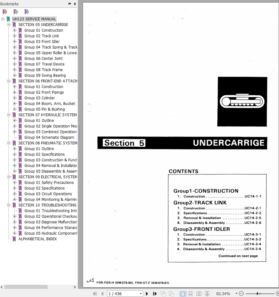 The Bookmarks of Hitachi UH123 Excavator Service Manual: