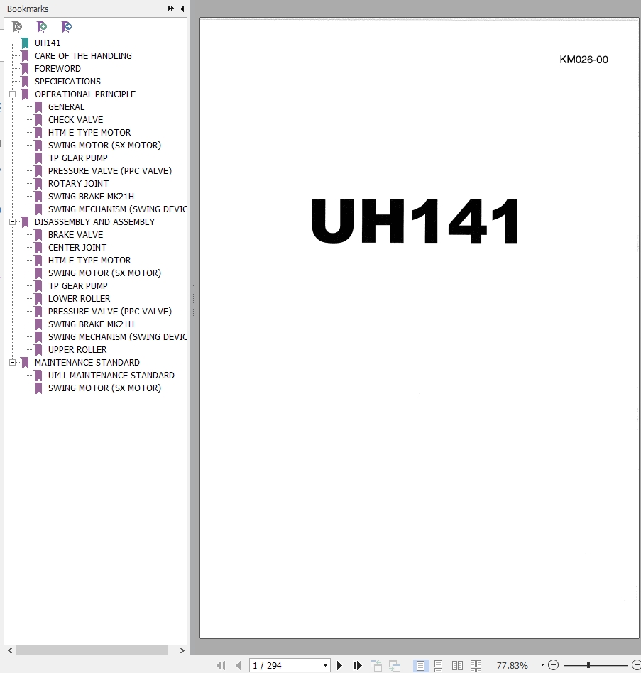 The Bookmarks of Hitachi UH141 Excavator Service Manual: