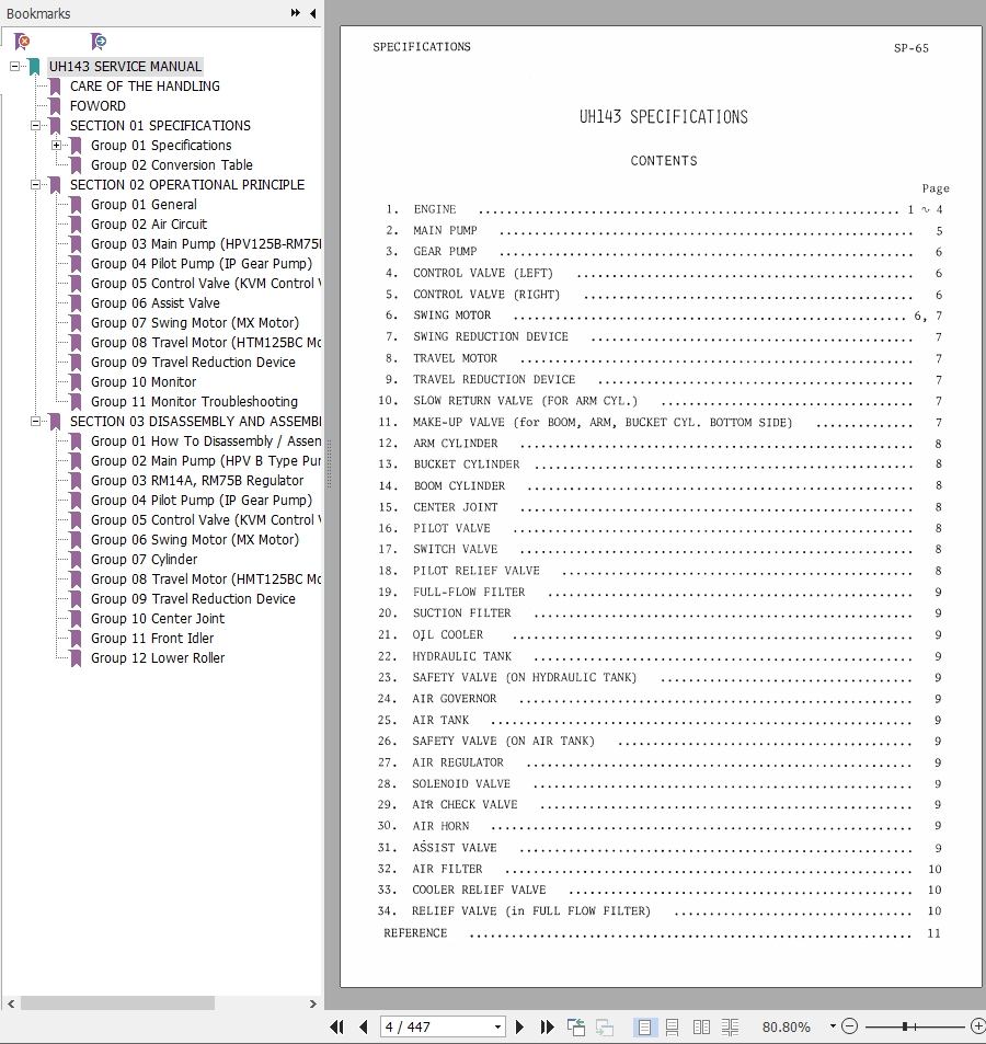 The Bookmarks of Hitachi UH143 Excavator Service Manual: