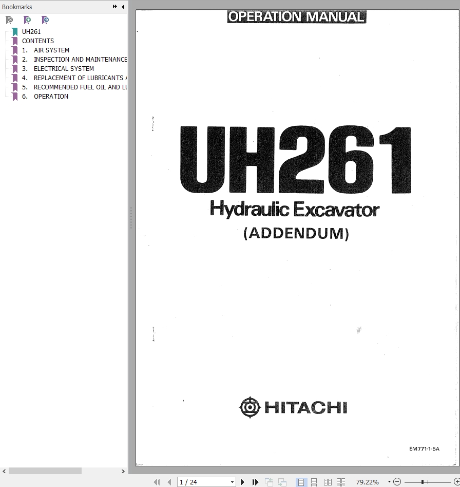 Hitachi UH261 Operation Manual EM771-1-5A