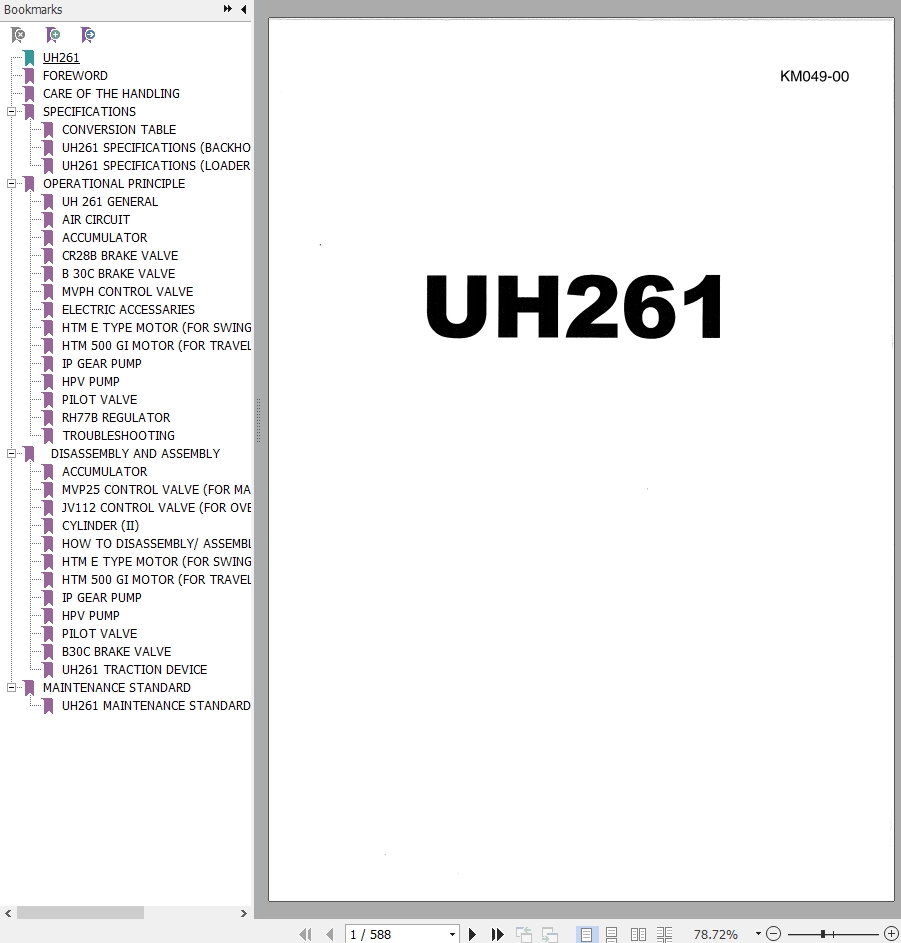 The Bookmarks of Hitachi UH261 Excavator Service Manual: