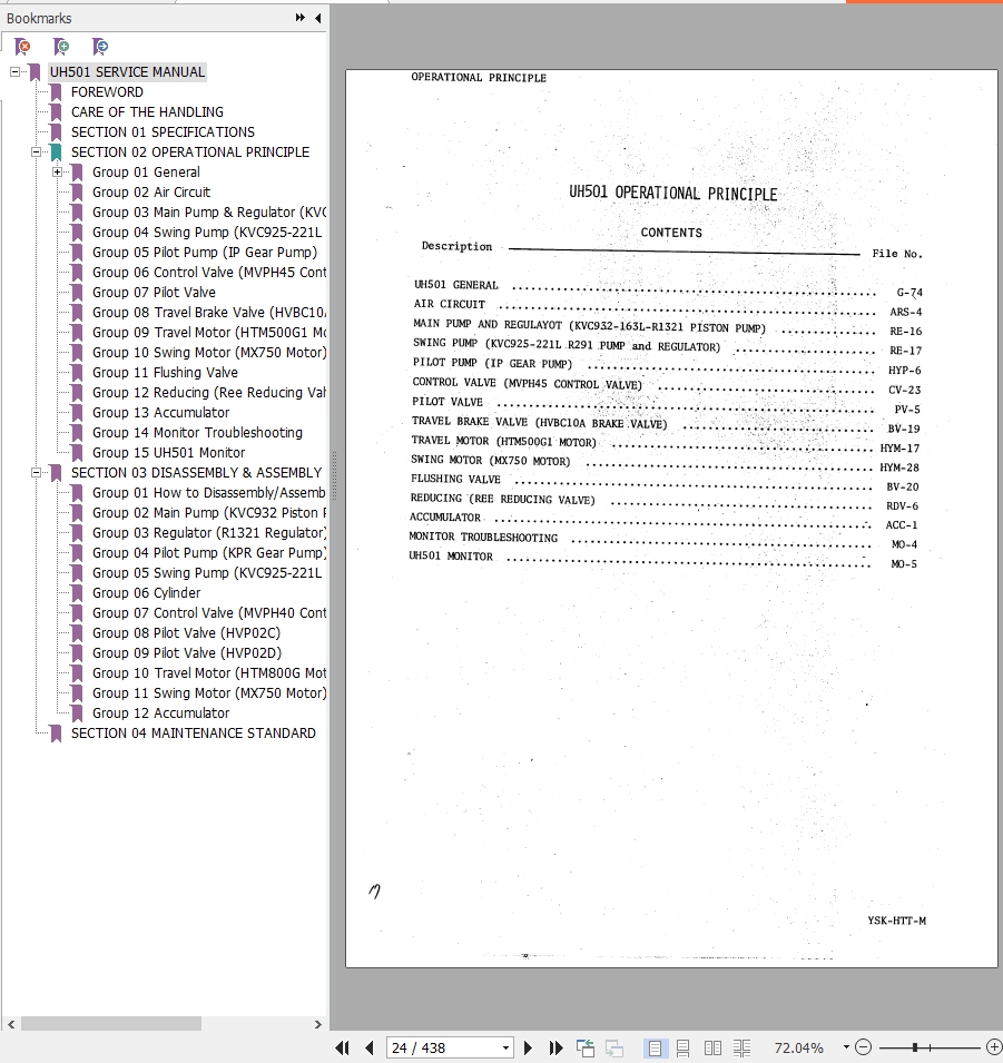 The Bookmarks of Hitachi UH501 Excavator Service Manual: