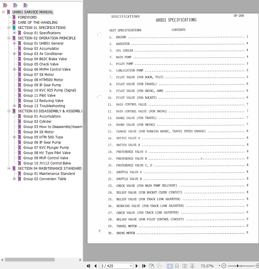 The Bookmarks of Hitachi UH801 Excavator Service Manual: