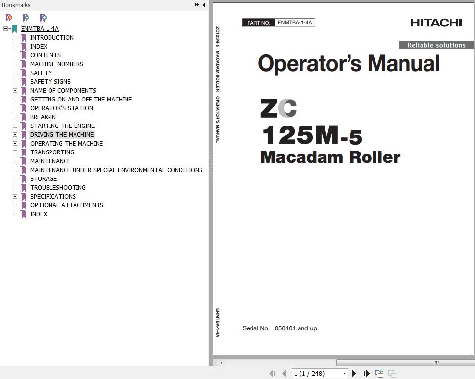 Hitachi ZC125M-5 Macadam Roller Operator’s Manual ENMTBA-1-4A