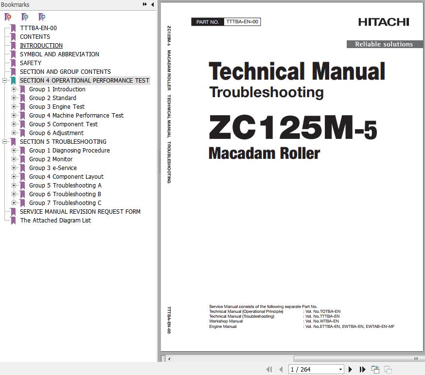 Hitachi ZC125M-5 Macadam Roller Technical Manual Troubleshooting TTTBA-EN-00