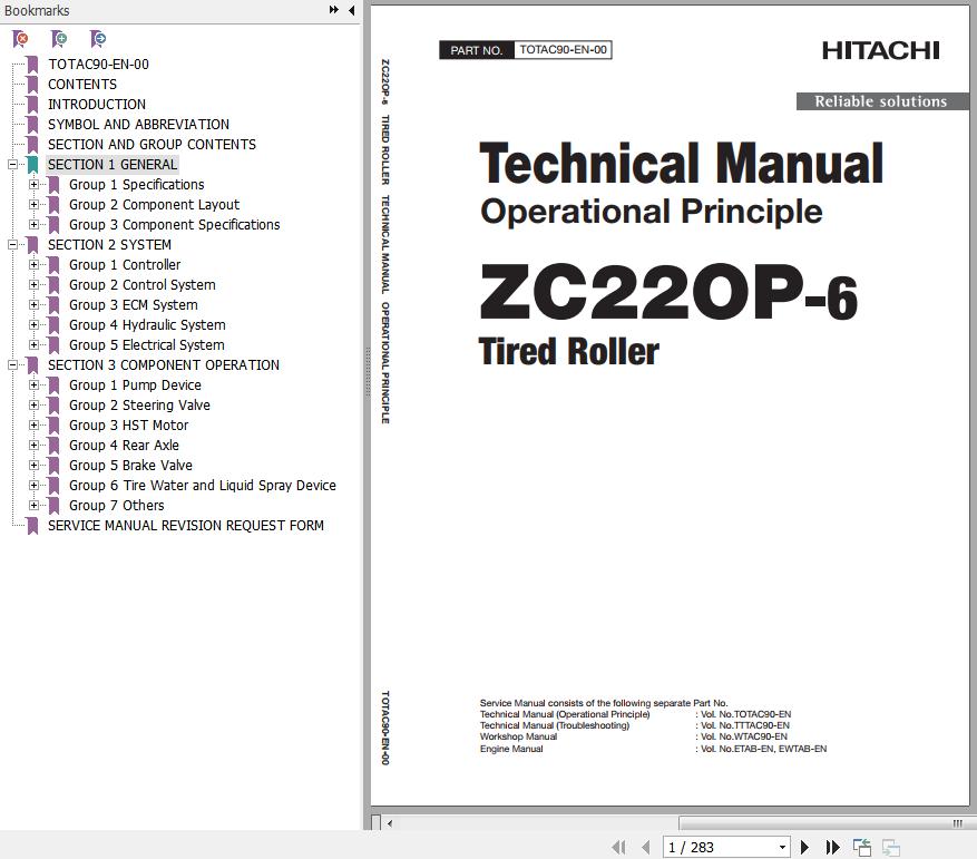 The Bookmarks of Hitachi ZC220P-6 Tired Roller Technical Manual Operational Principle: