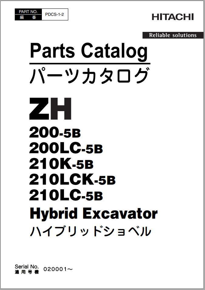 Hitachi, Hybrid Excavator, ZH200-5B Series, Parts ,Hitachi ZH200-5B Series Parts Catalog EN JP