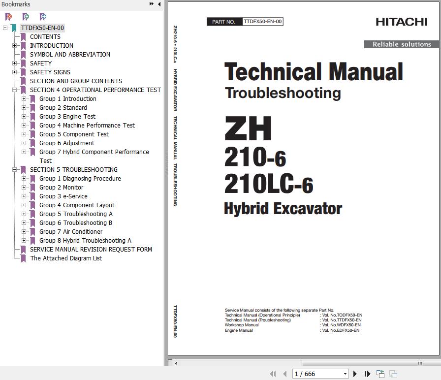 Hitachi ZH210-6 ZH210LC-6 Technical Manual Troubleshooting TTDFX50-EN-00 666 Pages 2017