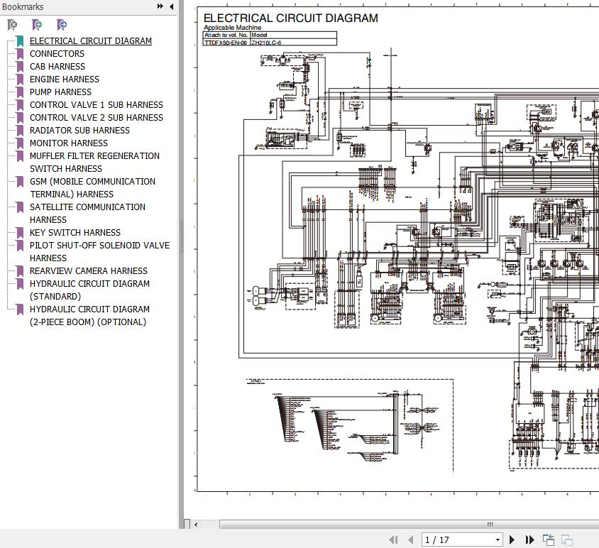 Hitachi ZH210-6 ZH210LC-6 Electrical & Hydraulic Circuit Diagram TTDFX50-EN-00 17 Pages 2017