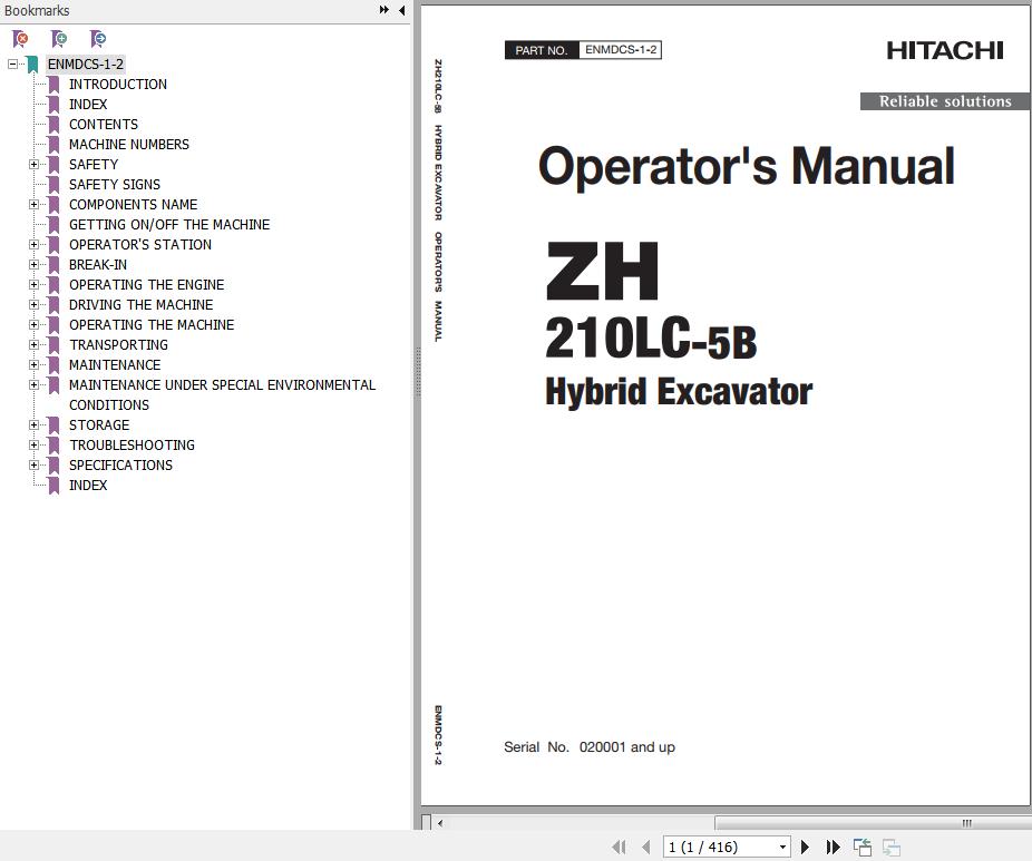 Hitachi ZH210LC-5B Operator's Manual ENMDCS-1-2