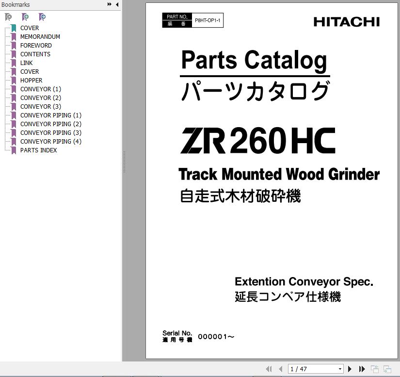 The Bookmarks of Hitachi ZR260HC Track Mounted Wood Grinder Parts Catalog: