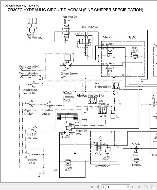 Hitachi ZR30FC Hydraulic Circuit Diagram (Fine Chipper Specification) T8J9-E-00 1 Page