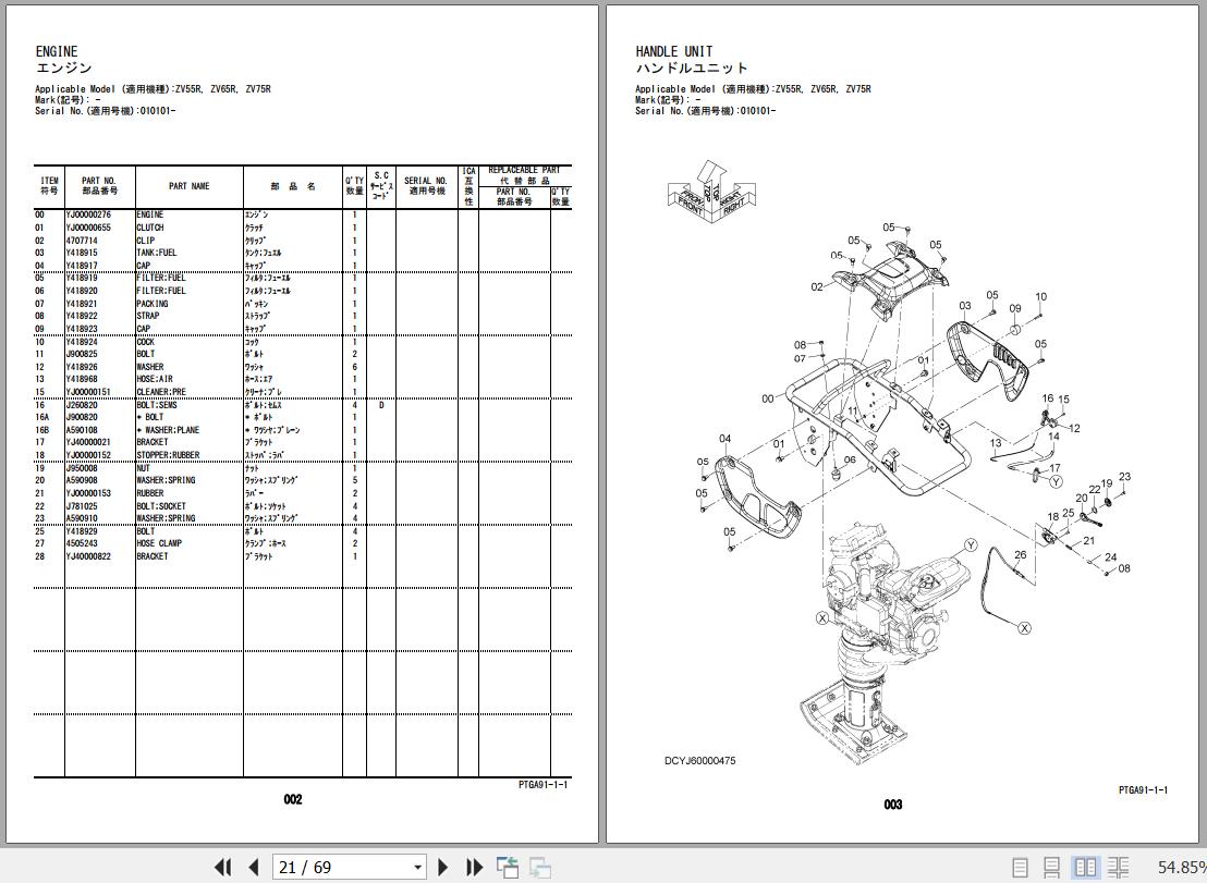 Hitachi ZV 55R 65R 75R 85R Honda GX100U 120U Parts Catalog PTGA91-1-1