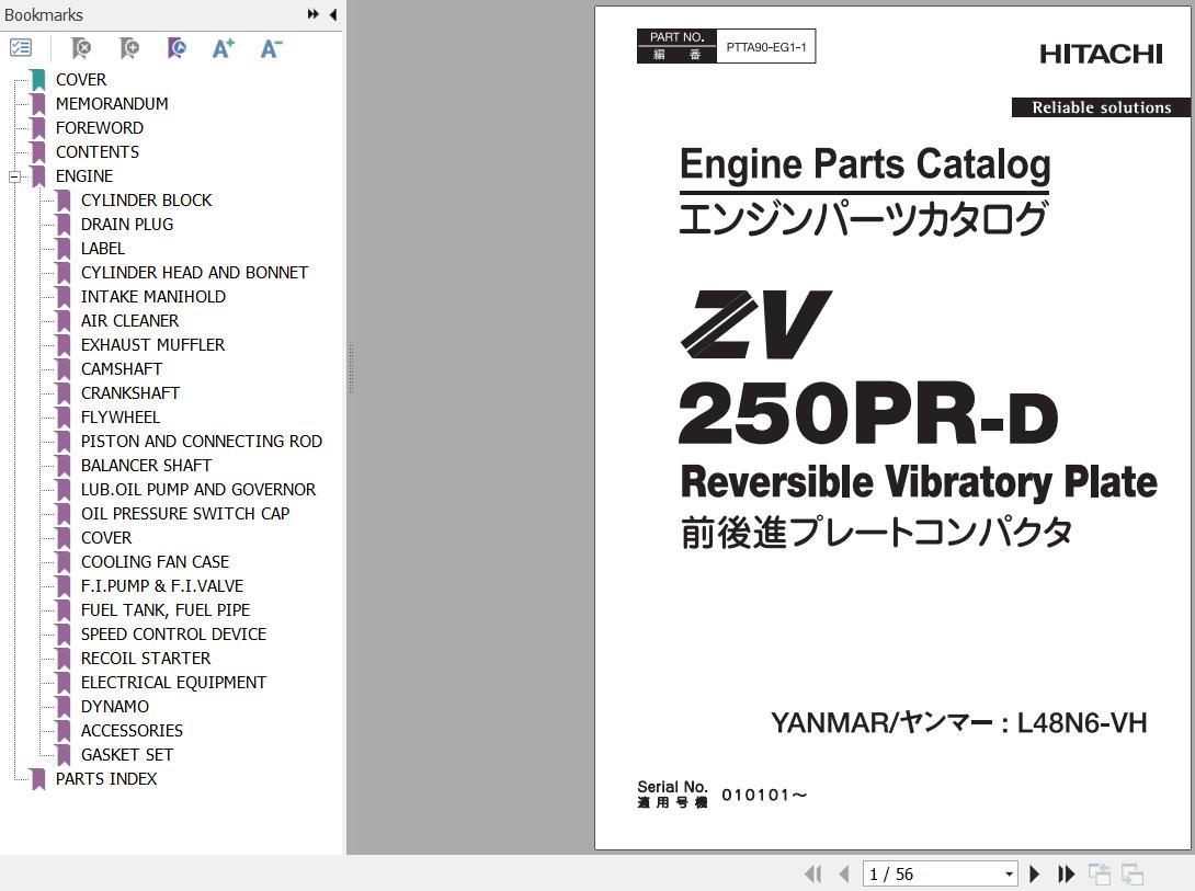 The Bookmarks of Hitachi ZV250PR-D Yanmar L48N6-VH Engine Parts Catalog: