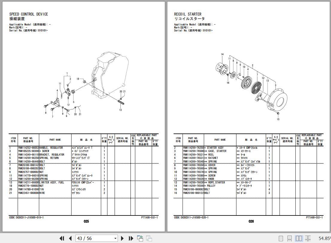 Hitachi ZV250PR-D Yanmar L48N6-VH Engine Parts Catalog PTTA90-EG1-1