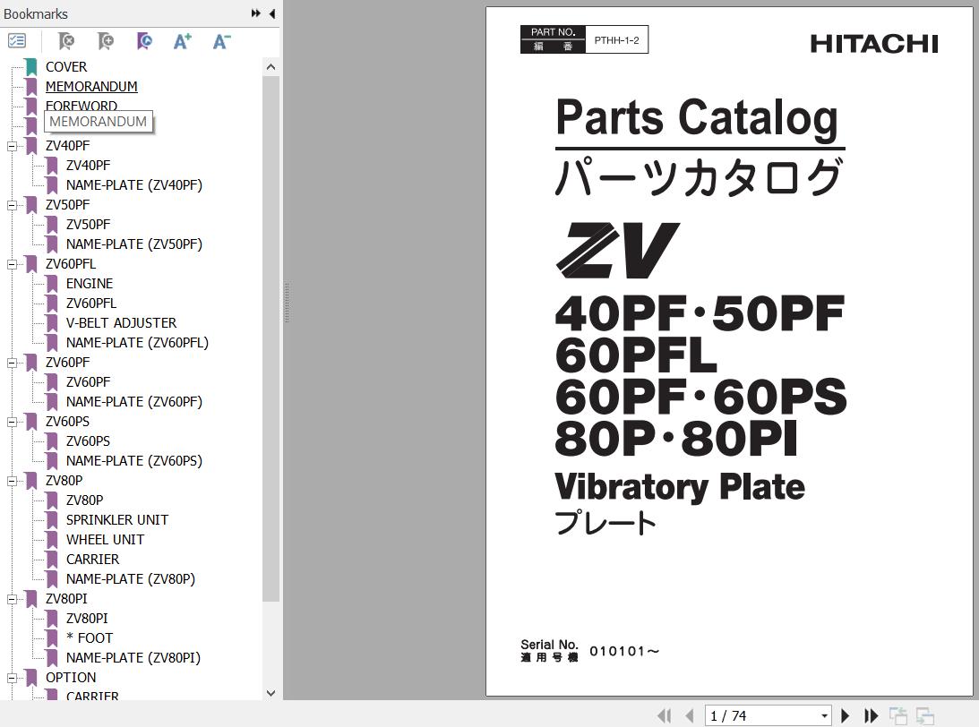 Hitachi ZV40PF 50PF 60PFL 60PF 60PS 80P 80PI Parts Catalog PTHH-1-2