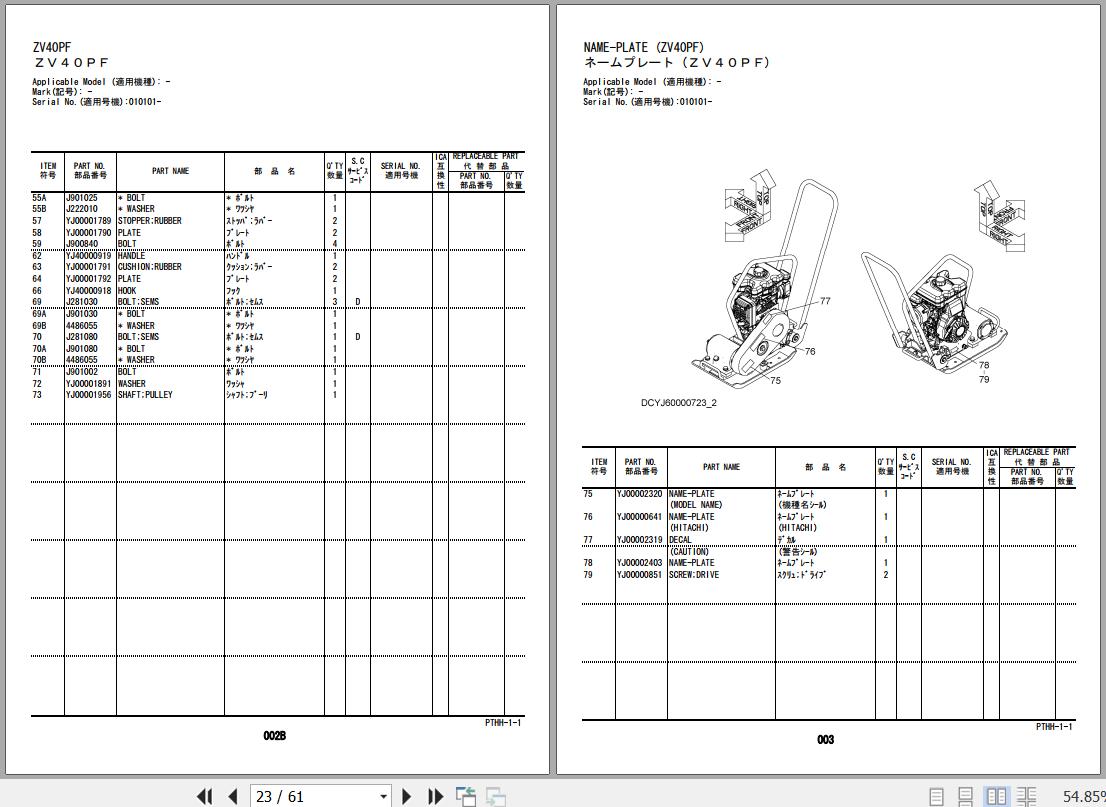 Hitachi ZV40PF to ZV80P Parts Catalog PTHH-1-1
