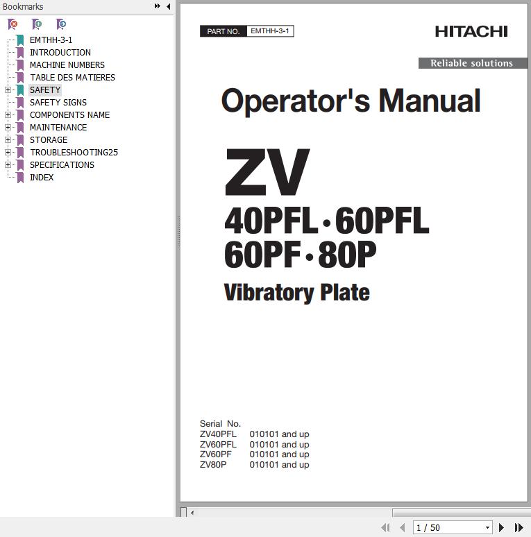 The Bookmarks of Hitachi ZV40PFL ZV60PFL ZV60PF ZV80P Vibratory Plate Operator's Manual: