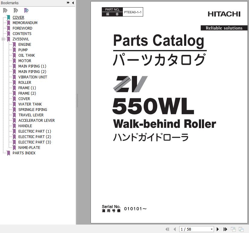 The Bookmarks of Hitachi ZV550WL Walk-behind Roller Parts Catalog: