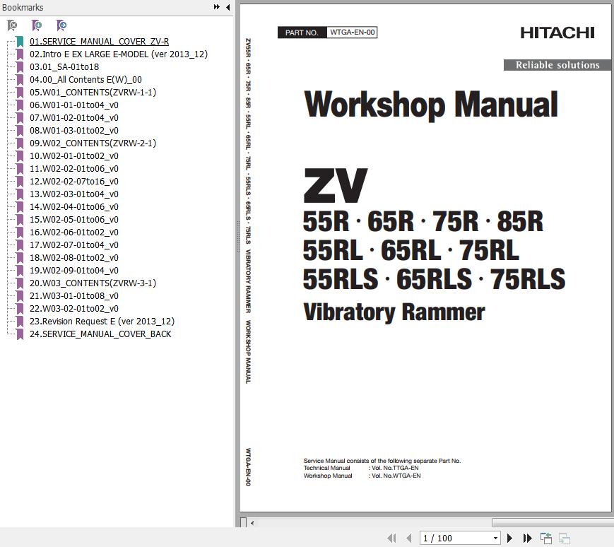 Hitachi ZV55R To ZV75LRS Vibratory Rammer Workshop Manual WTGA-EN-00