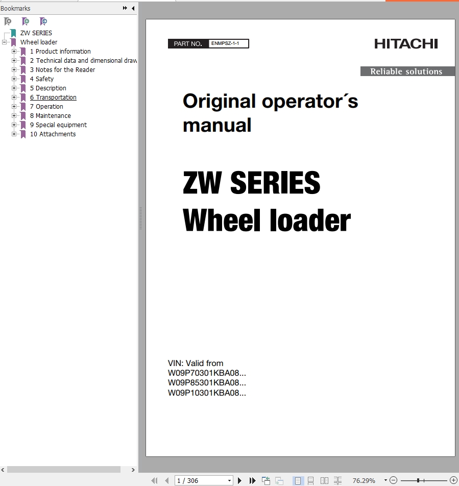 Hitachi ZW Series Operator's Manual ENMPSZ-1-1