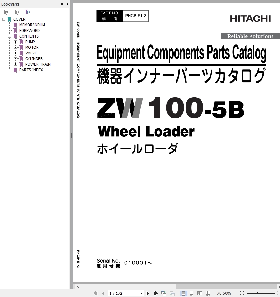 Hitachi ZW100-5B Parts Catalog PNCB-E1-2