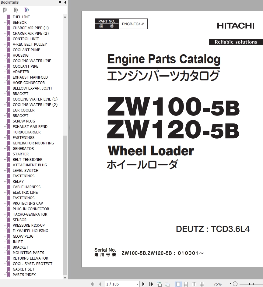The Bookmarks of Hitachi ZW100-5B ZW120-5B Wheel Loader Engine Parts Catalog:
