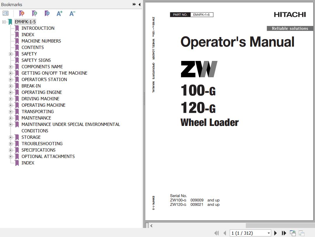 Hitachi ZW100-G ZW120-G Operator's Manual EM4FK-1-5