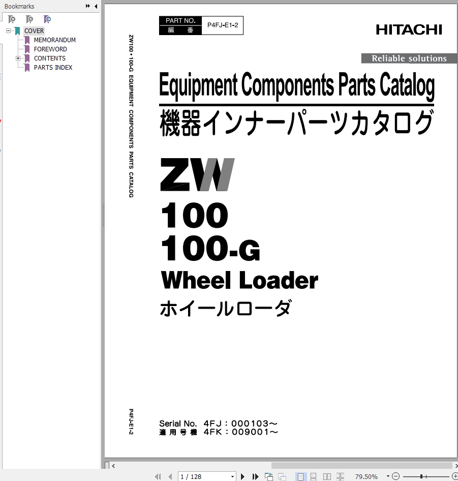 Hitachi ZW100 ZW100G Parts Catalog P4FJ-E1-2