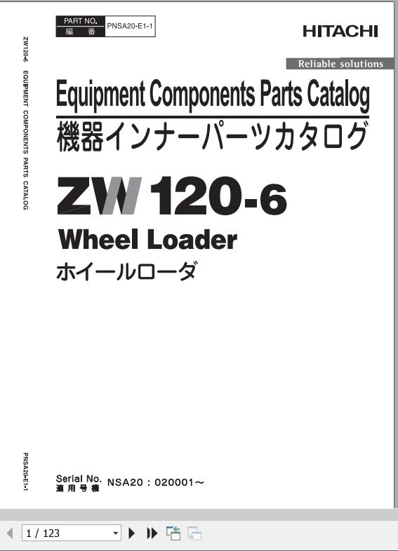 Hitachi ZW120-6 Equipment Components Parts Catalog PNSA20-E1-1 EN JP 123 Pages 2023