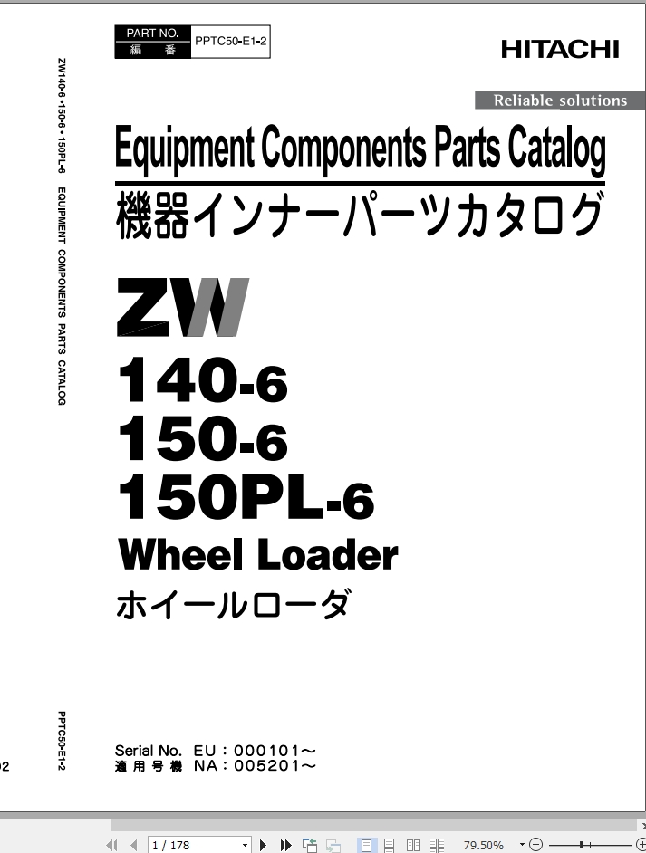 Hitachi ZW140-6 ZW150-6 ZW150PL-6 Parts Catalog PPTC50-E1-2
