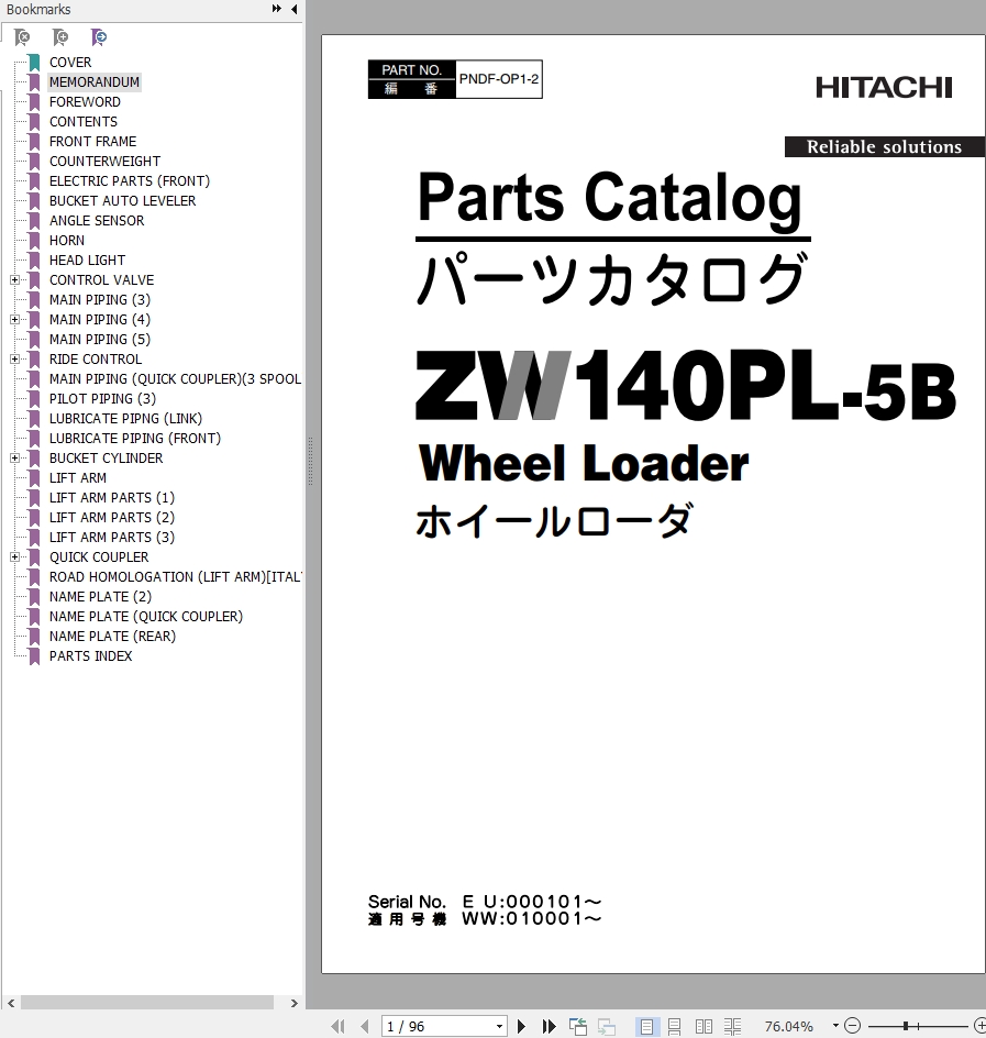 Hitachi ZW140PL-5B Parts Catalog PNDF-OP1-2