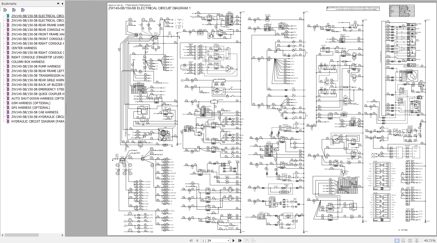 Hitachi ZW140-5B ZW150-5B Electrical Hdraulic Circuit Diagram TTNDG-EN-01 24 Page
